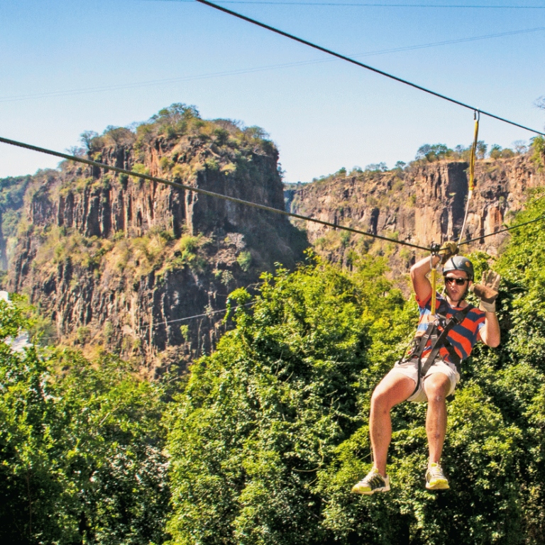 Glide through the treetops on Victoria Falls’ canopy tour, enjoying zip lines, swinging bridges, and stunning views of the rainforest and Zambezi River belowan exhilarating adventure for all.